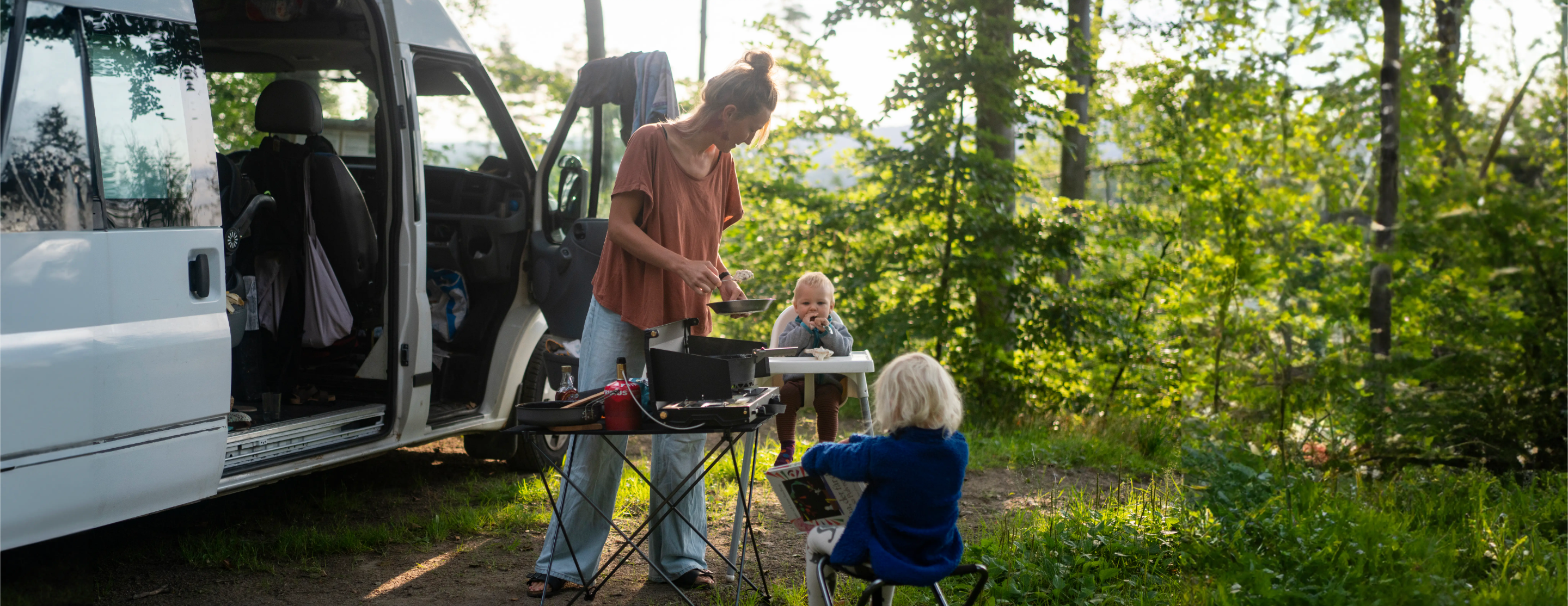 If you don't have your own equipment, you can rent it. And if you haven't pitched a tent before, it’s best to start close to home – maybe in a garden, at a beach or other place you know. For very young children, sleeping in a tent is no stranger than in other places (it's possibly more fun to play in a tent). Choose a place that you as a parent are comfortable with, and that is easy to get to and from because there will be a lot to carry. Read a bedtime story, brush your teeth, and do anything else you usually do at bedtime. Then snuggle up and listen to the birds, the wind, and the sounds of nature. You might sleep a little worse, but it's not the end of the world – you have the best little person(s) in the world for company.