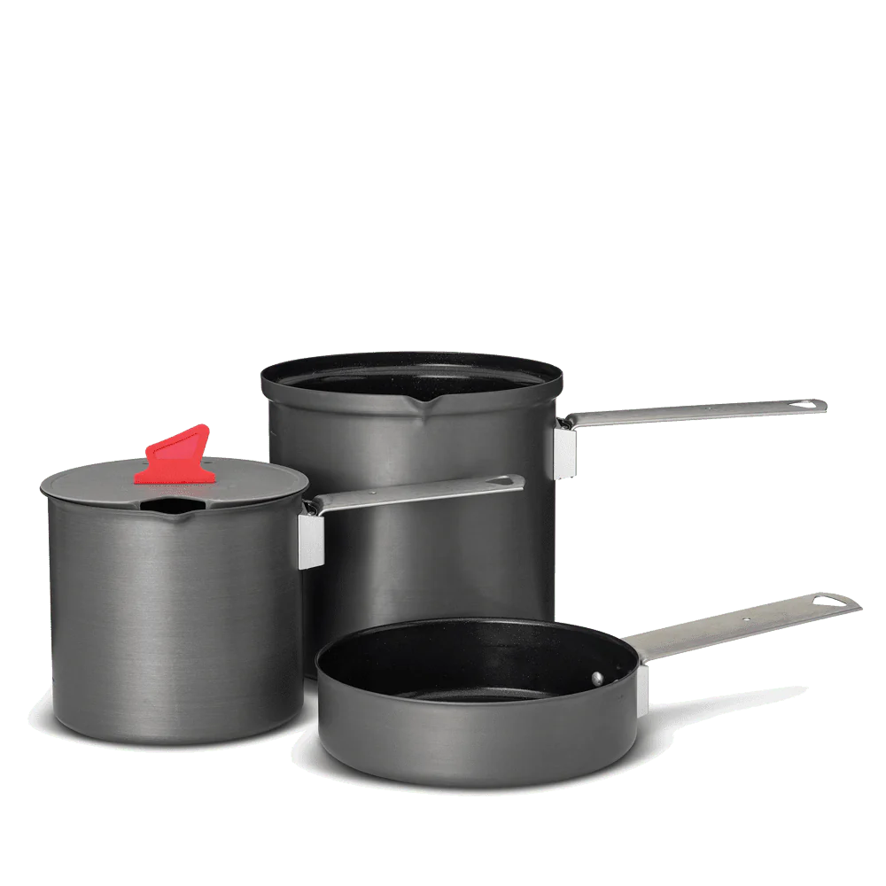 Primus cookware presents a diverse selection tailored to diverse outdoor cooking requirements. Available in different sizes and materials, such as stainless steel for rugged campfire use, natural anodized aluminum for effortless portability, and hard-anodized aluminum for durable yet lightweight performance.. Aluminum varieties are particularly favored for hiking and expeditions, offering a perfect blend of strength and lightweight design for easy transport.