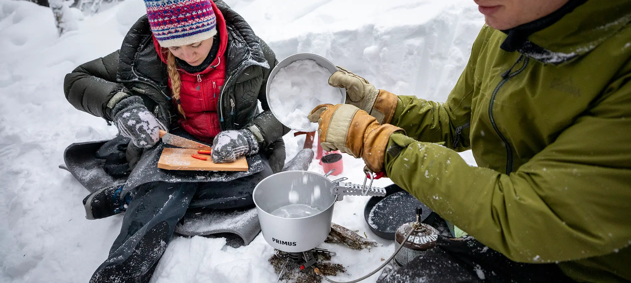 No matter what time of year you go out in nature, access to fresh drinking water is essential for a safe and enjoyable trip. When the snow has settled, running water may not be available, especially in high alpine environments. Instead, it is important to plan on melting snow and ice with your storm kitchen – and know how to do it.