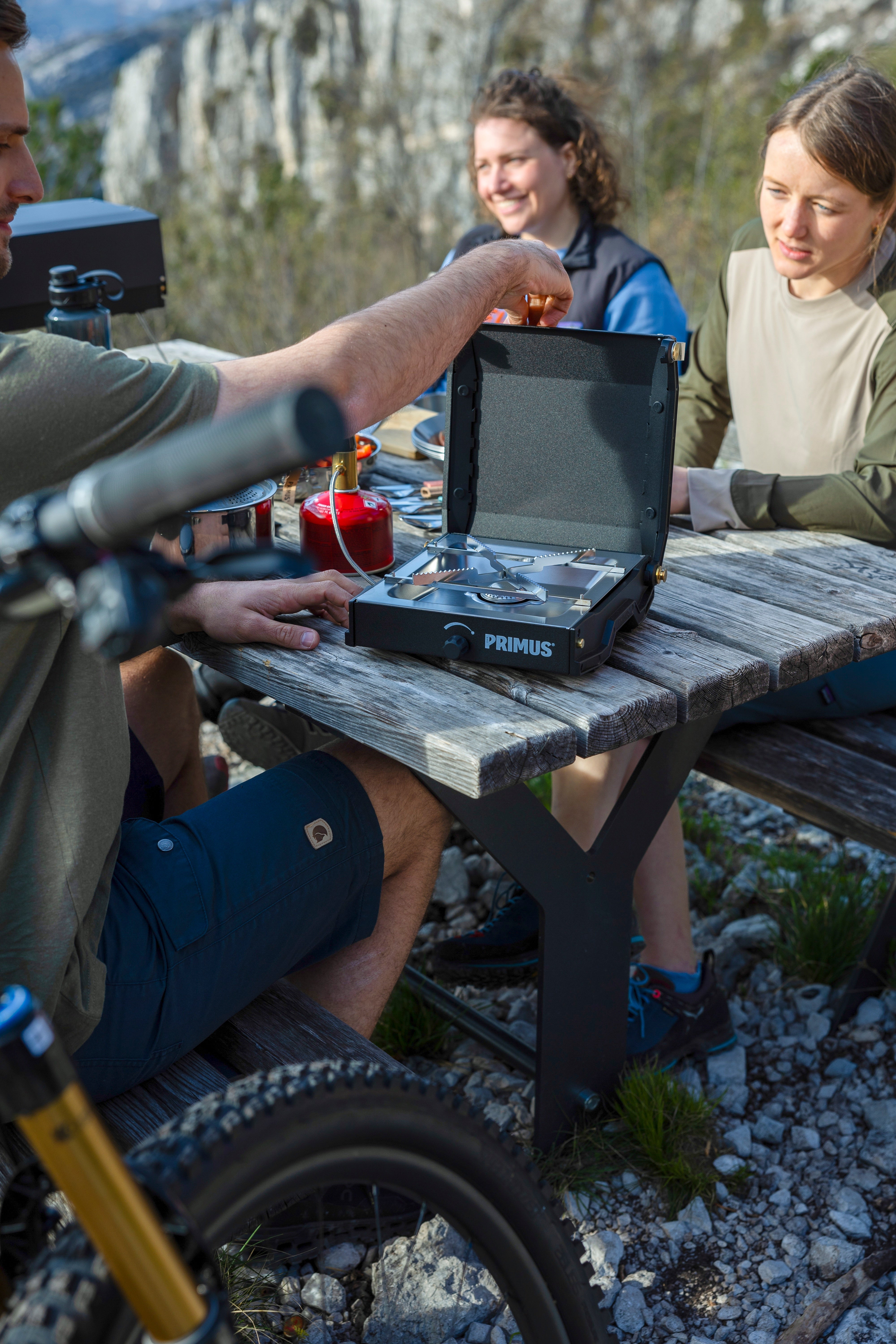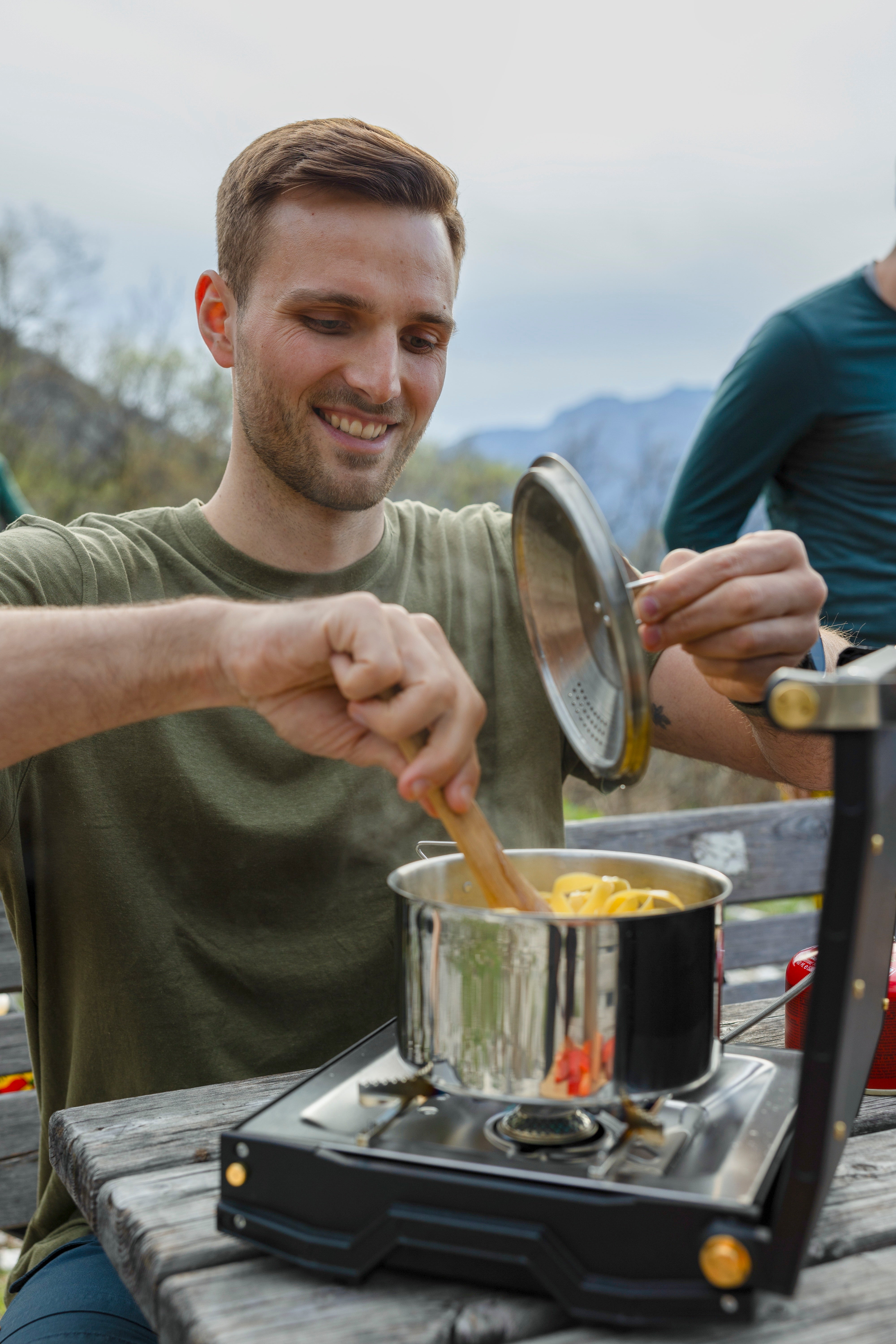 Compact camping stove with a powerful burner for effortless outdoor cooking for 1–3 people.