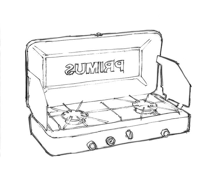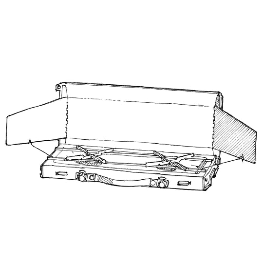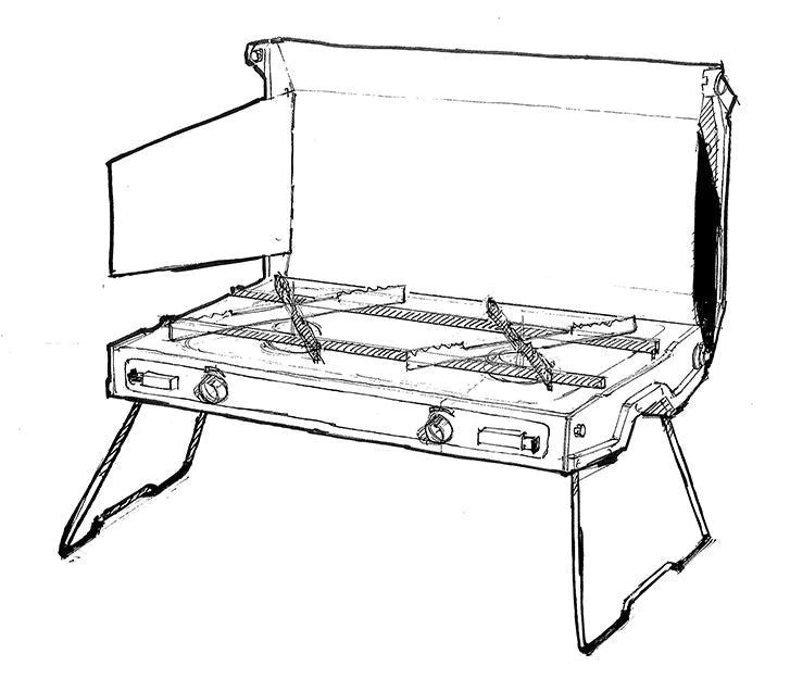 Dual burners allow you to cook multiple pots at different temperatures. The lid and side windscreens ensure steady heat in windy conditions. Designed to be carried, the wood-trimmed handle locks the stove closed. Removable pot support and drip tray for easy cleaning.