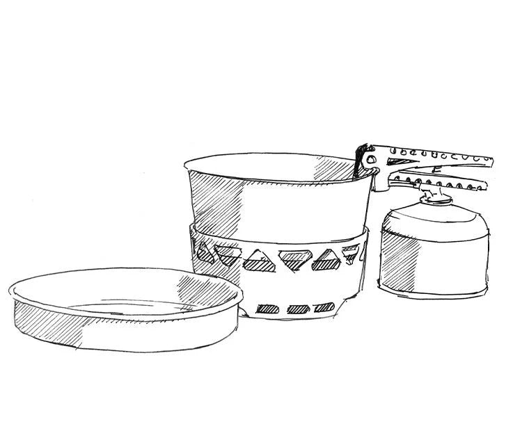 Features a 1-litre hard-anodized aluminum non-stick pot suitable for two. Laminar Flow Burner Technology™ offers a lower center of gravity making the stove stable, lighter and more compact. A Triangular Joint Connection secures the pot with a twist. Transparent Tritan® lid doubles as a colander. Everything nests together into one compact unit (including a 100-gram gas cartridge) and can be stored in it’s mesh bag.